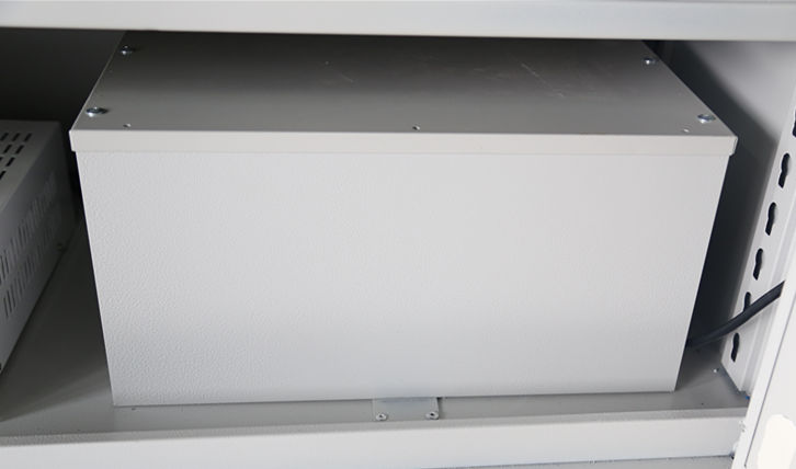 恒溫除濕功能是智能安全工具柜的基本功能,下圖是金能配備的新一代除濕機,其好壞的評定是是否在規(guī)定時間內讓柜體內達到指定的溫濕度,運行是否穩(wěn)定無噪音。