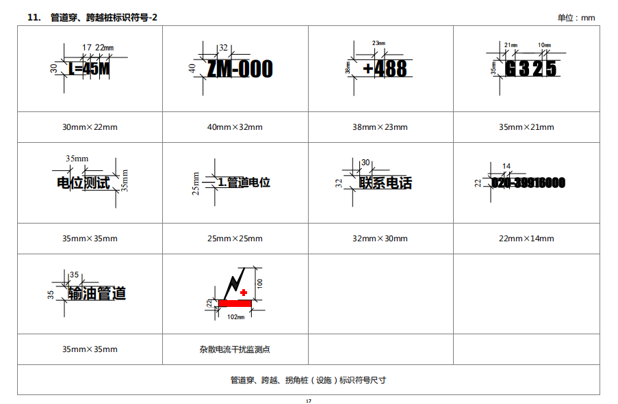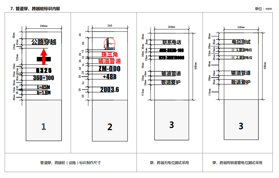 6. 管道穿、跨越樁標識內(nèi)容