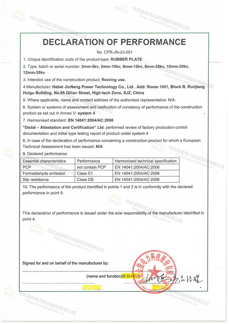 金能絕緣膠墊完成歐盟CE認(rèn)證,通過歐標(biāo)E1級環(huán)保標(biāo)準(zhǔn)